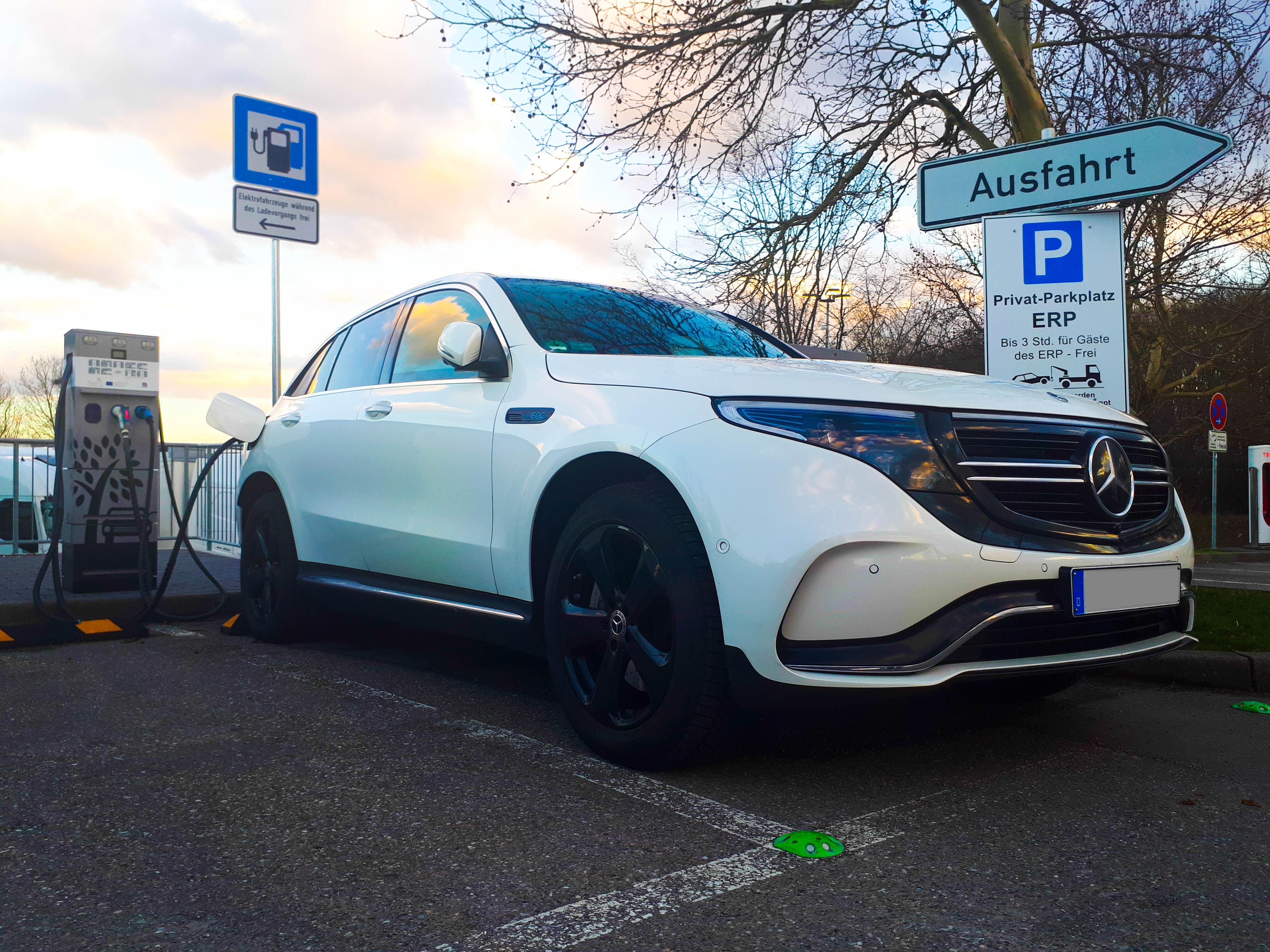Der Mercedes-Benz EQC beim Laden.